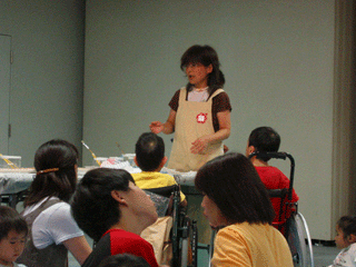 藍染についての説明を講師の上原さんからしていただきました。藍の葉でバックを染めるそうです。ワクワク!みんな真剣にお話を聞いていました