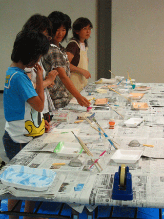 藍の他に絵の具もあり、どの色を藍と合わせようか?と悩んでいる姿もありました。