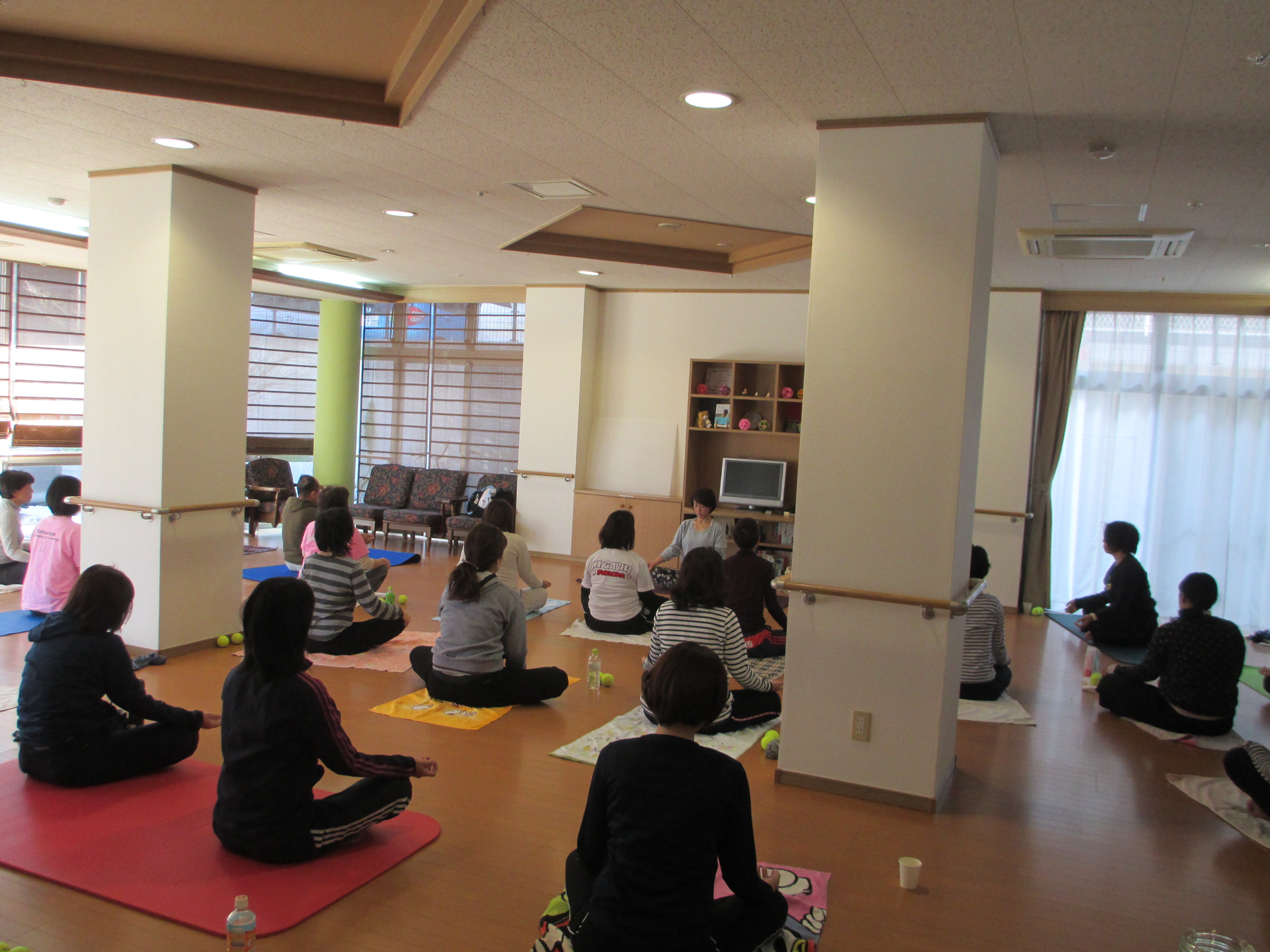 2月5日(火)、新事業所のホールにて講師にヨガインストラクターのRIKAさんをお迎えして全体研修を行いました。ヘルパー・ルームスタッフも自分の身体の状態を知るよい機会になりました。「ヨガはポーズが……」と思いがちですが、先生の「ヨガは難しいポーズをするものではなく、心と体のバランスを整えるものです」という言葉に納得の皆さんでした。これから、日常生活の中で、呼吸法からでも少しずつ取り入れていけたらいいですね。気軽にできるテニスボールを使った足の裏のマッサージは今日からでもできそうでした。