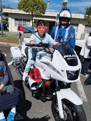 白バイに乗ったよ【よこて】 投稿日: 2024年10月12日2025年2月3日 投稿者: クックルー・ステップ管理人 九州ガンセンターで行われた健康フェスタに行ってきました。いろいろな催し物があったのですが、白バイ・パトカー乗車体験コーナーにまっしぐらでした 。 ポンタくんとハイチーズ かっこいいなぁ 乗ってみたかったんだぁ