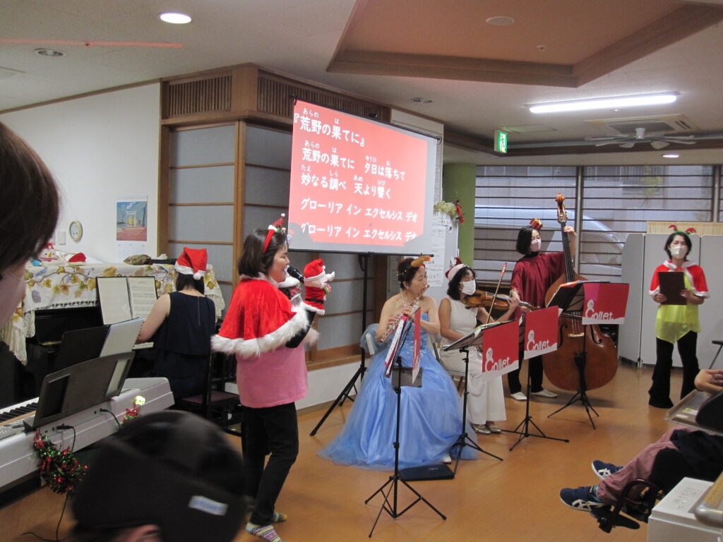 12月25日(木)、クックルーオリーブにて音楽ボランティアグループColletの皆さんをお招きして、クリスマスコンサートを開催しました。