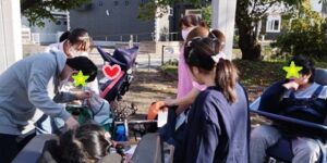 年2回の避難訓練 。今回は火事を設定しました。このあたりは、 …